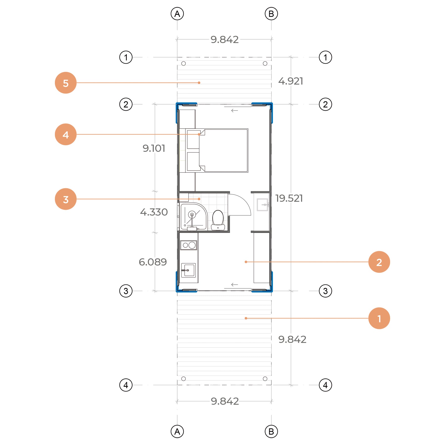 Pre-Installed Utilities: Plumbing, electrical, and HVAC systems come pre-installed in your VivaBox, making it easy to connect utilities on-site.