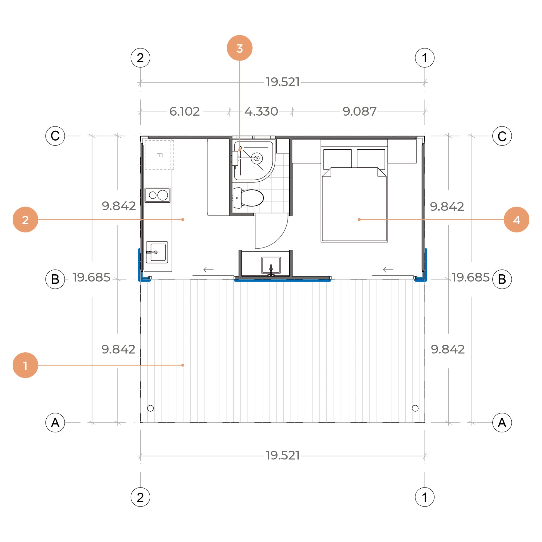 Pre-Installed Utilities: Plumbing, electrical, and HVAC systems come pre-installed in your VivaBox, making it easy to connect utilities on-site.